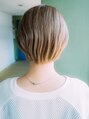 襟足にグラデーションを入れ、トップにレイヤーを入れて後ろに流れやすいスタイルになります。サイドの毛を耳くらいまでカットしすっきりとしたスタイルを耳にかけフェイスラインをデスことでよりスッキリしたスタイルになってます。