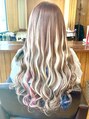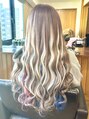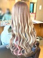 インナーをピンクと青のエクステでつけて、表面に白のエクステをメッシュで入れてます♪