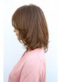 レイヤーカットにデジタルパーマをかけて動きをつけたセミミディアムスタイルです。最大の特徴は短めにつくった前髪とかぶせることのできる長さを残した部分です。スライドカットとストロークカットで束感を出しつつ丸みも持たせて柔らかな質感に。