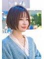 前髪ありのショートボブで乾かすだけでまとまり、セットも簡単にできます。カラーはナチュラルなブラウン系の色で落ち着いた雰囲気にしています。セット剤は、バームとオイルを混ぜて艶を出す感じにしています。