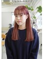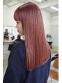 パツっと整ったロングヘアブリーチ後 ピンク、ベージュ、ラベンダーをミックスして作るコーラルピンク色落ちも可愛いカラーです