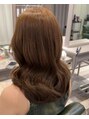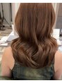 毛先に程よく厚みを残しつつ、トップにレイヤーカット。イルミナカラー、ヌードを使用し、透明感と艶感を表現。38mmのアイロンでフロントはリバース、バックの毛先をフォワード巻き仕上げ