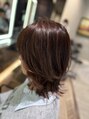 頭の丸みを出すために、レイヤーを入れて、くびれレイヤーにしました。カラーは毛先はブリーチ毛だったので、色をかぶせるように。