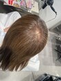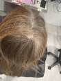 明るく染めることで、白髪が目立ちずらくなるようにしました。明るくても負担を減らしているので、髪もきれいにみえます。