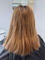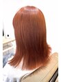 根元をブリーチでリタッチ後に少しピンクがかったアプリコットオレンジのカラーに☆暖色系の色は寒くなってくると凄く人気がでてくるので、ちょっといつもと雰囲気変えたいなという方はぜひ冬の間にチャレンジしてみて下さい(^^)