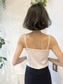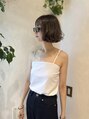 ギリギリ結べる長さでカットした、切りっぱなしボブに毛先を軽くコテ巻き。ヘアオイルを馴染ませ、全体的にスタイリング。髪全体に動きのあるボブスタイルです♪