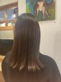 鎖骨下で揃えたミィディアムの外ハネスタイルです。内巻きでもSカールにも巻きやすい長さです。カラーは6トーンのアッシュブラウンで落ち着いた色味です。