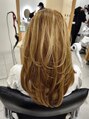 縮毛矯正を全体にかけている髪の毛だったので、硬さがでないように1度全体の長さをレザーでカット。量感の調整は地肌ギリギリからスキバサミを入れて軽さを出しました。柔らかく見える工夫を沢山いれました。