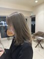 ブリーチカラーになります。ミルクティーをベースに、オリーブを少し入れて、寒色系ミルクティーグレージュに。
