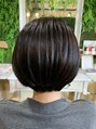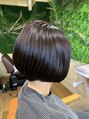 ベーシックなショートボブスタイルです。緩やかな前下がりボブでカットしてます。表面の髪は重くレイヤーが入り過ぎないようにカットしてあるので直毛さんは楽な長さで楽な重さのバランスです。オイルで艶をプラスしてあります。