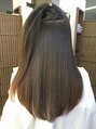 髪の傷みを最小限に抑えながら癖の部分は最大限綺麗に伸ばして艶が出る様にトリートメントと処理剤にこだわりました。後は縮毛矯正したときの独特の『ピン』とした感じが出ない様に毛先は柔らかくなる様に仕上げました。
