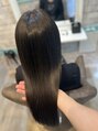酸性縮毛矯正とハホニコトリートメントで、まとまりのある柔らかいツヤ髪に仕上げました。湿気やうねりが気になる季節も安心!自然なストレートが長持ちします