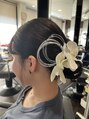 変形シニヨンに胡蝶蘭とシルバー飾りを組み合わせたシンプルヘアスタイル☆