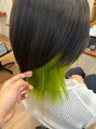 ウルフ×インナーカラー→ライムグリーン