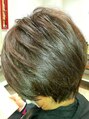 大人女子のミディアム、ショートスタイルでは、絶大な人気のグラデーションボブ。キレイなフォルムで頭の形が美しいです。白髪染めはアッシュを使い、明るく艶やかにしました。