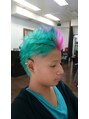 ツートンカラー。ブリーチで抜いた左右違う色をのせましたー♪