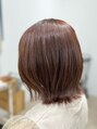 ボブベースで表面にレイヤーを入れて動きのあるスタイルにしました。スタイリングはアイロンで毛先を曲げるだけの簡単にできるスタイルです!カラーは白髪染めですが、ピンク味のある優しいお色になってます。