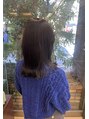 髪質、生え方、骨格に合わせた切りっぱなしボブをベースに外はねになる様レイヤーを入れ調整しました。ボンドカラーネイビー、零秒女神を調合しました。