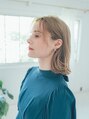 抜け間のある切りっぱなしボブスタイルです。お顔周りも薄めのシースルーバングでボブでも子どもっぽくならないようにしています。カラーもブリーチをし、透明感がでるようベージュ系のカラーにして、海外風にしています!【ブリーチ/ハイライト/パーマ】
