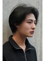 襟足長めのメンズスタイルです。流れるようにセットするためにパーマがおすすめです。内側の髪を短くしているので、量の多い方でもチャレンジできると思います。