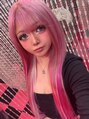 もともとブリーチしてたのをリタッチブリーチしてからカラーでサーモンピンクに おへそ下の長さに原色ビビッドピンクと原色キャンディーピンクと原色パールホワイトのシールエクステ70枚、編み込み原色ビビッドピンクのエクステ6本、シルバーのティンセル12本