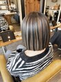 ダブルカラーはお任せください!このスタイルはパツボブをベースにタイト仕上げる事がポイント♪カラーはブリーチでしっかり脱色してからミルクティーベージュ×ブラックのアンブレラカラー♪根本が伸びてきても気にならないデザインです^ ^