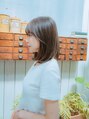 パツっと切りっぱなしのボブをコテ巻きしたスタイルです。後ろから見るとやや重めのスタイルとなりますが、前髪を薄めにすることでバランスがとれます♪
