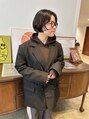 クセ毛を生かした丸みのあるリップラインボブ。少し前上がりにして個性まだした大人モードなボブ。