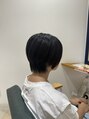小学生のお客様。襟元をタイトに、前下がりのボブスタイルに仕上げました。耳にかけると可愛いスタイル、下ろしていてもナチュラルなスタイルになるよう意識してカットさせていただきました。