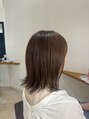 ローレイヤーで毛先に段差を入れ、ご自身でも外ハネスタイルを再現しやすいようにカットさせていただきました。白髪にも色が入り易い『トープグレージュ』というカラー剤を使用し、透明感がありつつも気になる白髪へはしっかり対処させていただきました。