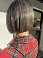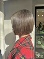 ミニボブ。丸くならない、ストンと落ちてカッコいいボブです。タートルネックや襟の高い服を来ても、スッキリ。カラーはブリーチ必須のシルバーベージュです。元の髪色によってブリーチ1回か2回必要になります。