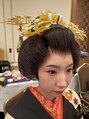 郷土の花嫁というテーマに基づき、文金高島田のかつらを身に付け、大振袖を着付致しました。現代見ることがほぼなくなってきた姿ですが、日本の花嫁といえばこのような豪華で華やかに着飾った姿があったことをお伝えできたらなと思っております
