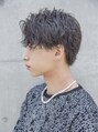 【men`s】フェザーパーマグレー刈り上げショートブルーカラー