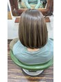 メテオカラー/加減法でファッションカラーでも白髪カバー赤みを消してカーキ感を出しています/髪質改善メテオでトリートメントを架橋させ色持ちも良くなり手触りツヤ断トツ