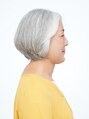 ぺたんとしがちなトップをカットでカバー。白髪を生かしつつ白髪が気にならない大人系のボブスタイル。スタイリングは乾かすだけで形になります。