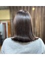 パープル系カラーで赤みを消して前髪を輪郭に合わせてカットすることで小顔効果◎