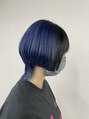 デザインカラー×ウルフカットの組み合わせは最強ですね!!ネイビーブルーと前髪の一部分のみブラックを使用したスタイルになってます!他とは違うデザインカラーをやってみたい方は是非ご相談ください!!
