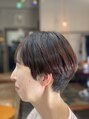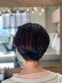 固め多めな髪質をコンパクトにしましたサイド ネープは短くトップに長いレイヤーを入れて角を取ると輪郭にフィットした シルエットになります