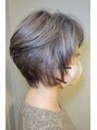 ダイヤモンドグラデーション。襟足スッキリのショートスタイル。明るめのイノアカラーブルーアッシュにハイライトとイヤリングカラーを施したグラマラススタイル。