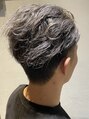 2ブロックメンズスタイル ブリーチ+オンカラー後グラデーションブロックでカットトップセクションは束感と毛量調整