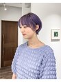 マッシュショート◎2回ブリーチで作るラベンダーカラー。伸びてきたブリーチをしていない根本は、明るめのベージュでルーツカラーにしています。