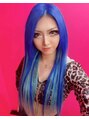 カットは毛先3センチ程切って調節程度に量を もともとブリーチしてたのをパワーブリーチで全体一回と根元2回ブリーチしてからカラーバターで原色ブルー エクステはおへそ下の長さに70本で原色スカイブルーとメッシュで原色ブルーを