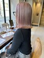 ダブルカラーからのピンクベージュ。切りっぱなしボブの少し伸ばしていく段階です。最近は少し長めの切りっぱなしボブや服に合わせてスッキリする方に分かれます。