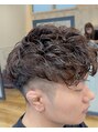 サイド、襟足は刈り上げてスッキリと。ナチュラルパーマを当て、ジェルで簡単スタイリング。