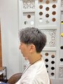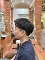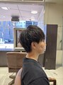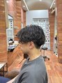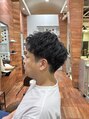 サイドのボリュームが少なくトップからフロントにかけてボリューム感を持たせたパーマスタイル