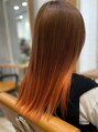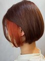 耳掛けするしないでガラッと雰囲気の変わるサイドのみインナーカラーボブ♪高発色カラー剤使用で1ブリーチでもピカピカのオレンジに◎