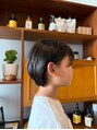 サイドが広がりやすく、丸くなるので長さを残し、縦長のボブになるようにカットしています。