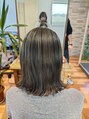 今回は地毛を活かして、中は染めず表面のみのブリーチでをしました!表面の色はミルクティを目指してみました!カットは長かったロングからクセを活かした外ハネロブに!クセを見ながらカットしたのでドライヤーだけでまとまるスタイルになりました!