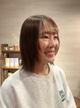 やわらかく落ち着いた雰囲気のオリーブベージュにアゴ下で切り揃えたボブスタイル
