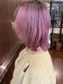 根本はグレーブラウン、毛先はピンクのデザインカラー